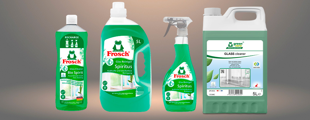 Обеспечьте своим клиентам кристальную чистоту. Закажите эффективные средства для мытья стёкол от Frosch и Mayeri у надежного оптового поставщика — компании EUROMARKET.