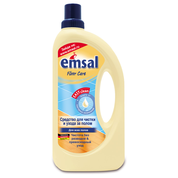 Средство для полов Универсальный уход 1000мл Emsalсоздан для мягкого очищения всех видов полов в помещениях и вне дома: кафеля, полов из натурального и искусственного камня, ПВХ, линолеума, каучука, ламината, паркета и пробки.Средство не содержит воска, поэтому не оставляет разводов даже при регулярном использовании. Благодаря усовершенствованному составу с формулой для быстрого высыхания, пол сохнет гораздо быстрее, чем после использования обычных универсальных чистящих средств. Имеет антибактериальный эффект.
