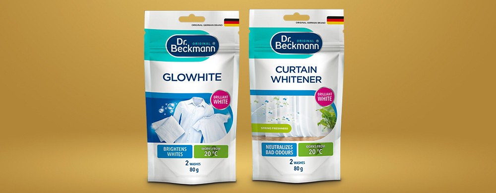 1. Отбеливатель для гардин и занавесок, дой-пак 80 г, Dr. Beckmann