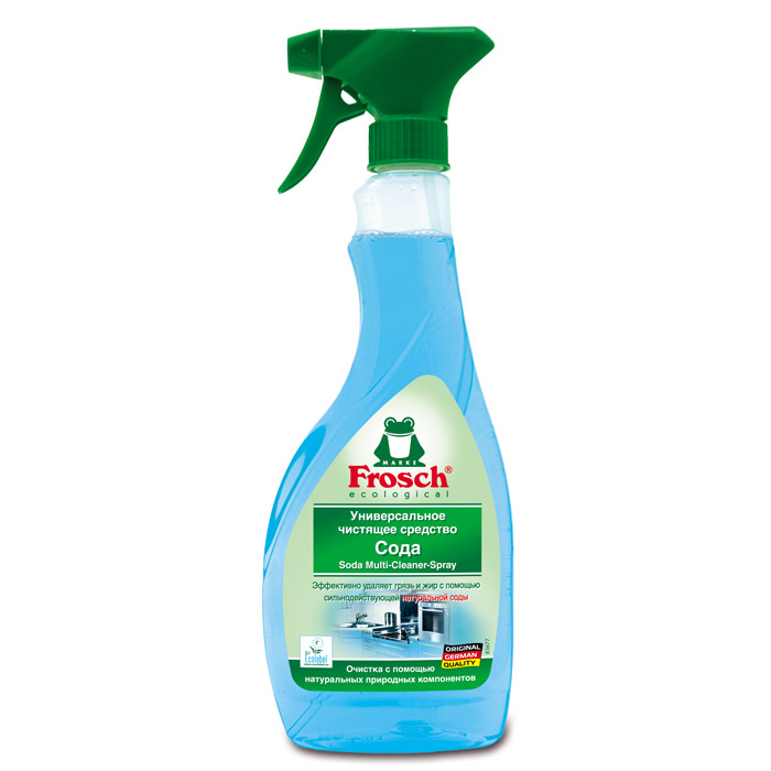 Производители бытовой химии торговой марки Frosch предлагают наилучшее возможное сочетание эффективности очистки и ухода с максимальной защитой окружающей среды. Инновационные формулы на растительной основе, использование переработанных пластмасс, например, для бутылок, и производство самих продуктов соответствуют девизу компании: сохранение экологии.Средство универсальное чистящее Сода 500мл Frosch гарантирует интенсивную чистоту практически для всех моющихся поверхностей, особенно на кухне. Формула с содой эффективно удаляет стойкий жир и грязь и оставляет свежий аромат. Безопасен для использования в зоне приема пищи, например, на кухонных столешницах. Отлично отмывает грязь с пластиковых поверхностей, таких как пластиковая мебель, рамы и двери из платика.
