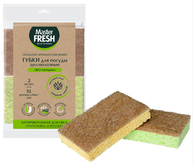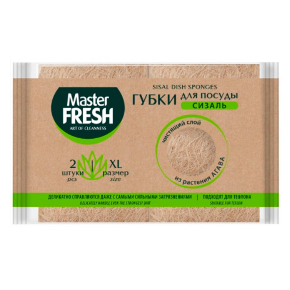 Большой ассортимент губок для мытья посуды пополнился новинками от Master Fresh серии ЭКО. Это Губки для посуды из агавы целлюлозные 2 шт (120x25x127мм) Master Fresh ЭКОЦеллюлозные губки Master FRESH - это уникальное сочетание целлюлозы и сизаля, на 99,9% ЭКОЛОГИЧНЫЙ материал. Чистящий слой сизаль – это экологически-чистый материал, получаемый из листьев растения агава. Не содержит абразивных частиц, идеально подходит для уборки деликатных поверхностей из тефлона, закалённого стекла, акрила и пластика, НО при этом великолепно справляется с сильными загрязнениями.