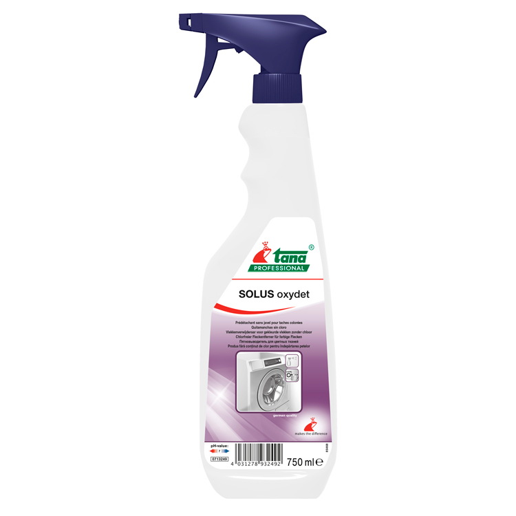 НОВИНКА в разделе "Профессиональная бытовая химия".Пятновыводитель для цветных тканей, не содержащий хлора, для прачечных 750мл Solus oxydet Tana