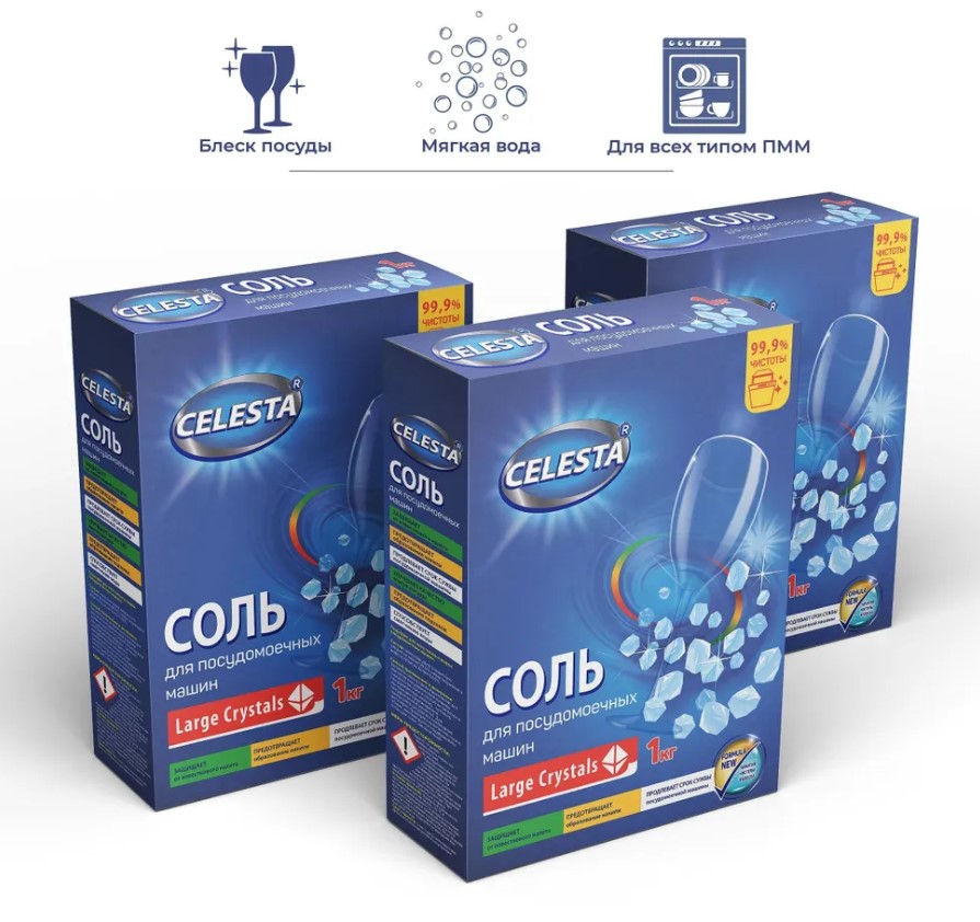 Соль для посудомоечных машин Celesta PREMIUM - это соль премиум-класса, которая обеспечит вашей посуде и посудомоечной машине максимальный уход и защиту. Она имеет крупную грануляцию, которая обеспечивает высокую степень очистки воды от жесткости и известкового налета. Соль для ПММ Celesta PREMIUM предотвращает образование накипи на нагревательных элементах, увеличивая эффективность и долговечность посудомоечной машины.