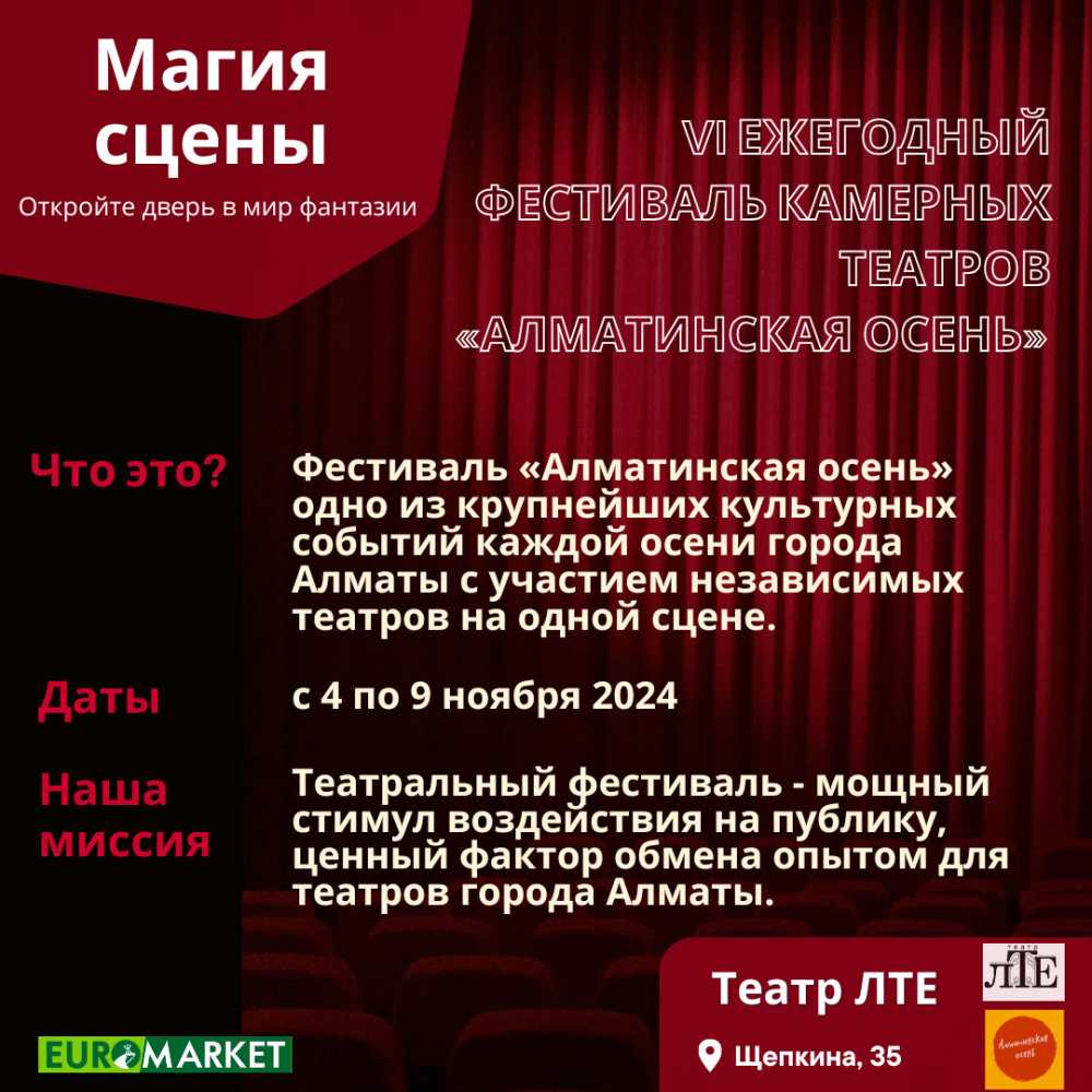 VI Ежегодный фестиваль камерных театров «Алматинская осень 2024» вновь открывает свои двери!