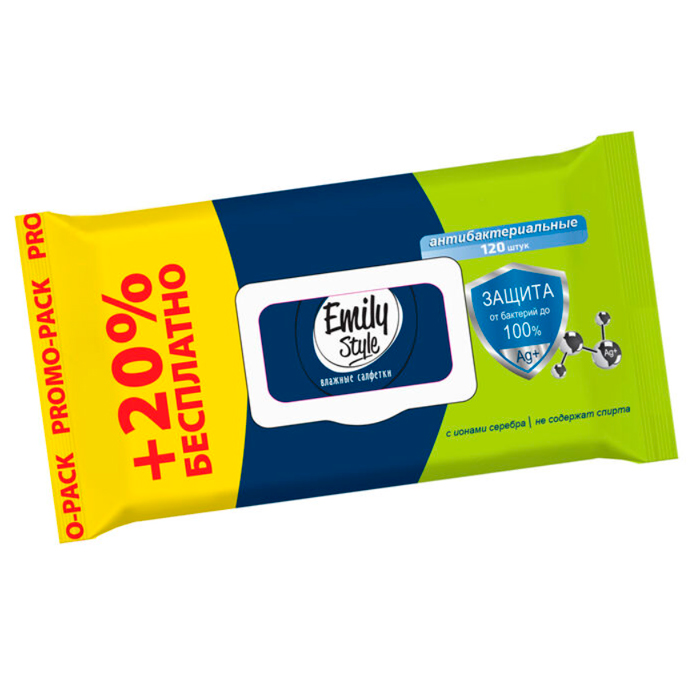 Салфетки влажные универсальные Emily Style «Антибактериальные» обладают антибактериальной активностью в отношении грамположительных и грамотрицательных микроорганизмов. Обеспечивают чистоту и защиту каждый день. Содержат деминерализованную воду с ионами серебра. Очищают руки и обеспечивают защиту от бактерий до 100% каждый день. Обширная область применения: частичная санитарная обработка пациентов медицинских учреждений, гигиеническая обработка рук медицинского персонала, лабораторий, различных промышленных предприятий, детских дошкольных и школьных организаций, социальных организаций, гигиеническая обработка рук и кожных покровов после посещения бассейнов, бань, саун, фитнес-центров, гостиниц, общежитий, вокзалов, общественных туалетов, гигиеническая обработка рук работников массажных, пирсинг-, тату-салонов, перед приемом пищи и после туалета. Мягкий материал салфеток и нежная формула лосьона заботливо ухаживают за Вашей кожей, поддерживая естественный ph-баланс. Состав не содержит спирта. Ионы Серебра, которые имеют обеззараживающие свойства; Ромашка, которая бережно ухаживает за Вашей кожей.